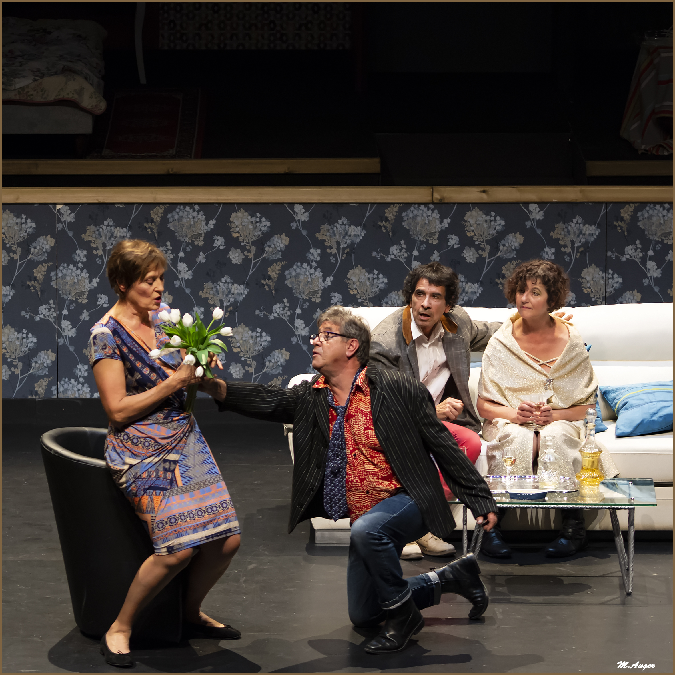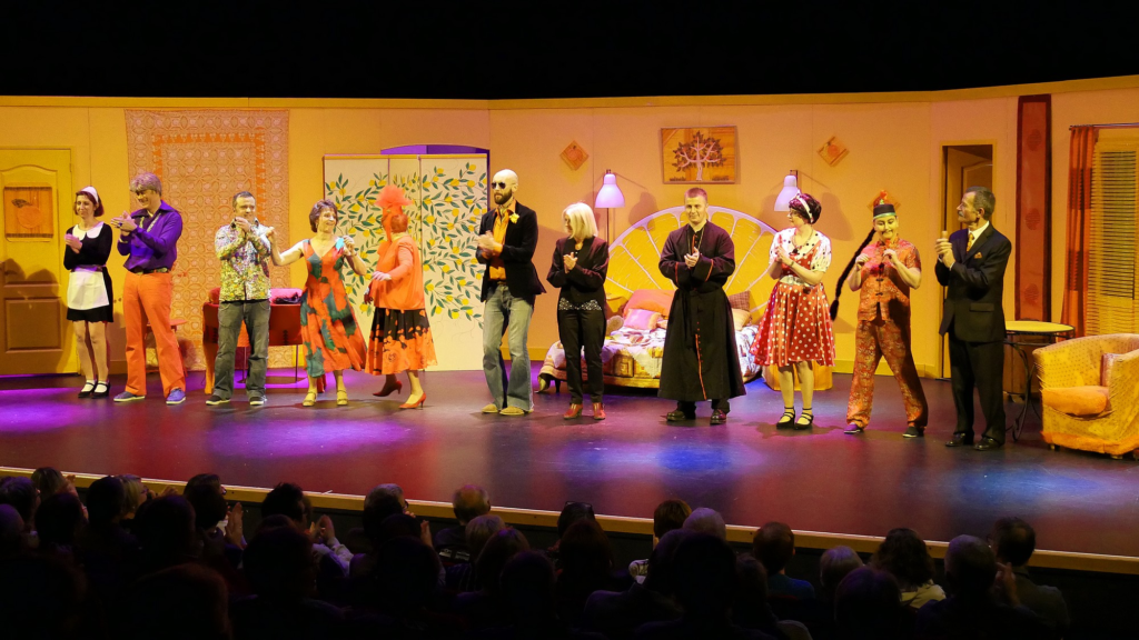 TOUT FEU TOUT FEMME comédie de Bruno DRUART, 1h. – 5f. – Durée 1h45 – Chaque année, cinq femmes se retrouvent pour un déjeuner plein d’échanges, de rires et d’émotions. Ce jour, c’est l’anniversaire de Judith qui a récemment perdu l’homme de sa vie. En fouillant / fouinant dans ses affaires, elle découvre une correspondance non datée qui laisse sous-entendre que l’une des autres femmes aurait été la maîtresse de son mari. Elle veut savoir… Mais qui est-ce ?… (cf. https://www.artcomedie.com/)